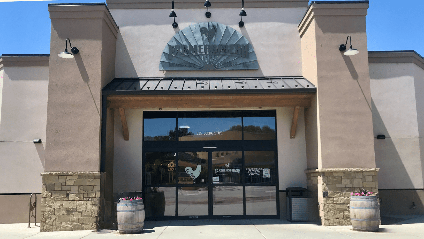 Modern Local Grocery Storefront with Wood Accents and Glass Fac…