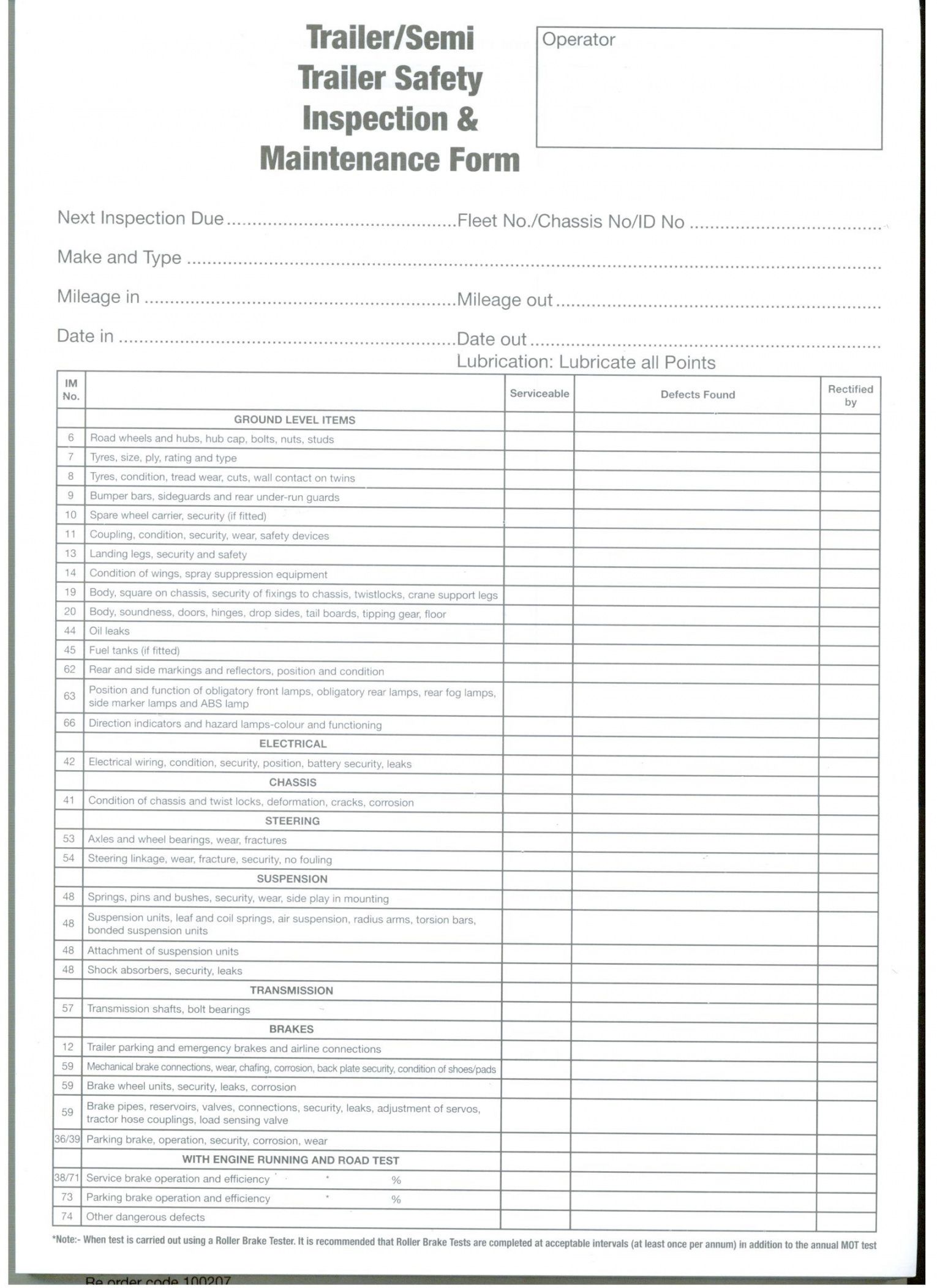 Printable Trailer Inspection Form - Printable Free Templ…